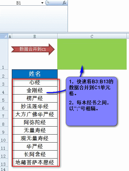 | 225-常用函数-使用PHONETIC函数将多个数据合并到一个单元格.GIF | 揍我 | 常用函数 | 使用PHONETIC函数将多个数据合并到一个单元格 |