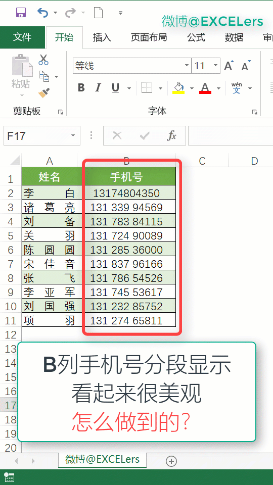 | 40 | 039-单元格格式-让手机号分段显示.GIF | 揍我 | 单元格格式 | 让手机号分段显示 |