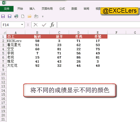 | 48 | 047-单元格格式-将不同的成绩显示不同的颜色.GIF | 揍我 | 单元格格式 | 将不同的成绩显示不同的颜色 |