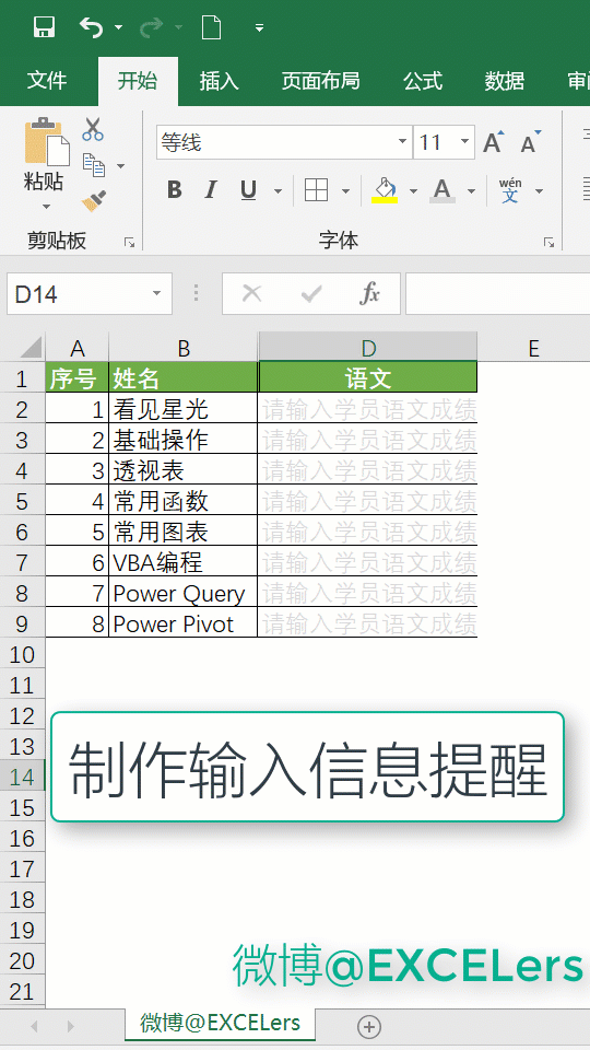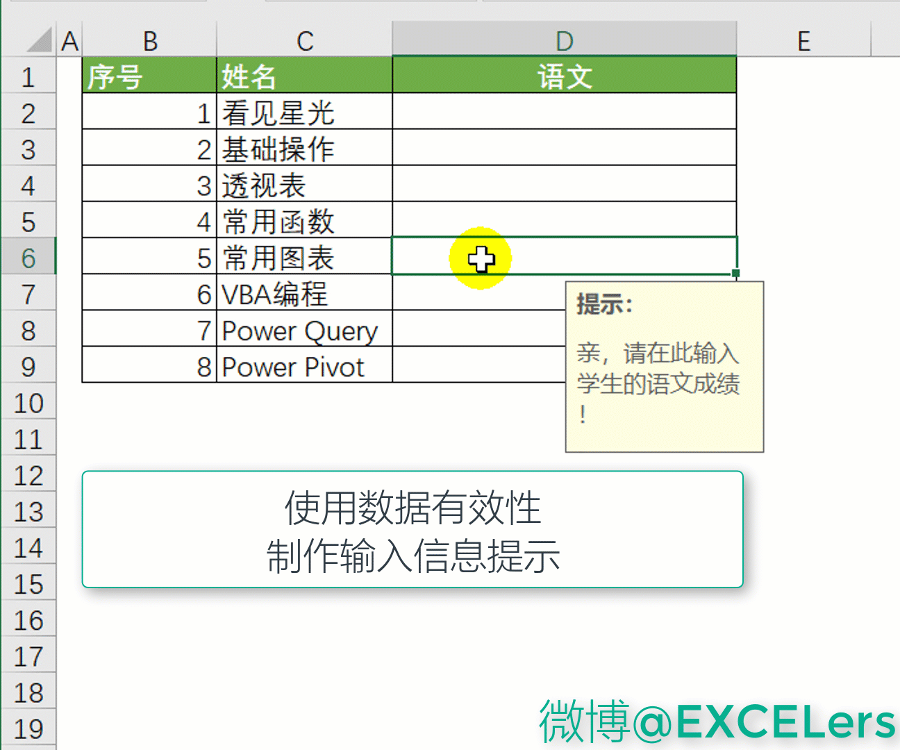| 142 | 141-数据有效性-制作单元格输入信息提醒功能.GIF | 揍我 | 数据有效性 | 制作单元格输入信息提醒功能 |