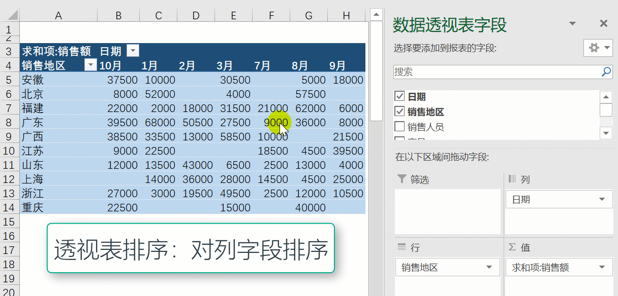 | 181 | 180-透视表-列字段排序.GIF | 揍我 | 透视表 | 列字段排序 |