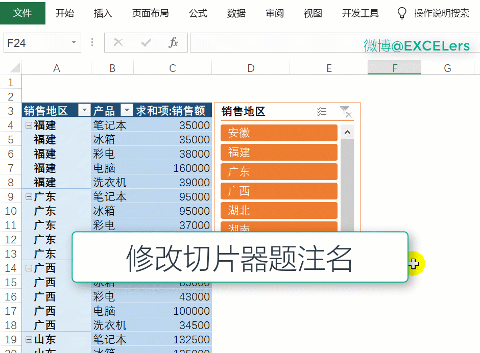 | 192 | 191-透视表-修改切片题注.GIF | 揍我 | 透视表 | 修改切片题注 |