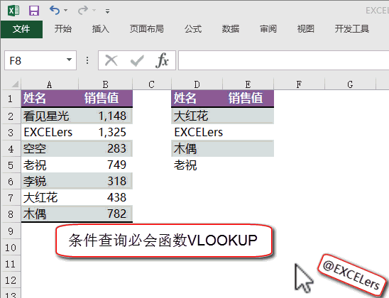 | 232-常用函数-VLOOKUP多条件查询.GIF | 揍我 | 常用函数 | VLOOKUP多条件查询 |