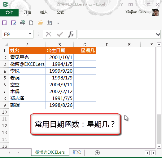 | 209-常用函数-使用函数计算星期.GIF | 揍我 | 常用函数 | 使用函数计算星期 |