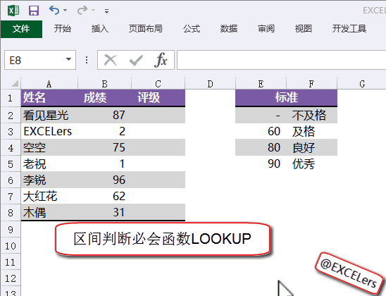 | 213-常用函数-使用LOOKUP函数按指定区域判断数据等级.GIF | 揍我 | 常用函数 | 使用LOOKUP函数按指定区域判断数据等级 |