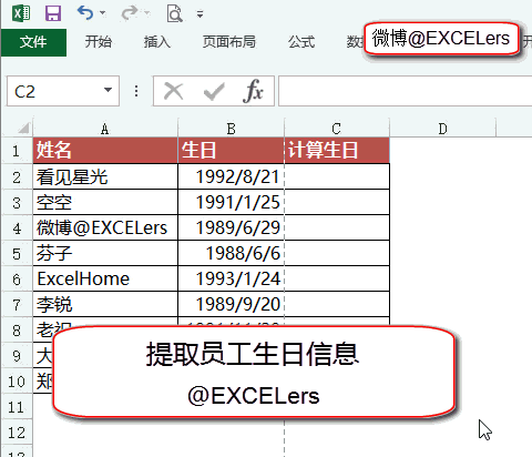 | 218-常用函数-TEXT函数提取员工生日信息.GIF | 揍我 | 常用函数 | TEXT函数提取员工生日信息 |
