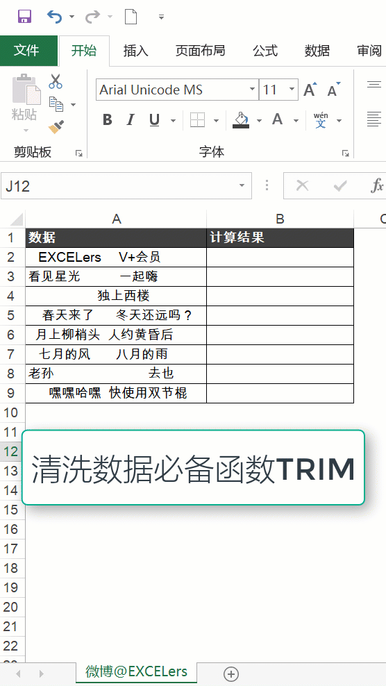 | 230-常用函数-清理空格必会函数TRIM.GIF | 揍我 | 常用函数 | 清理空格必会函数TRIM |