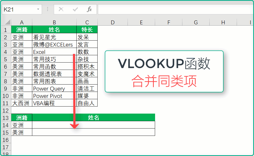 | 231-常用函数-VLOOKUP合并同类项.GIF | 揍我 | 常用函数 | VLOOKUP合并同类项 |